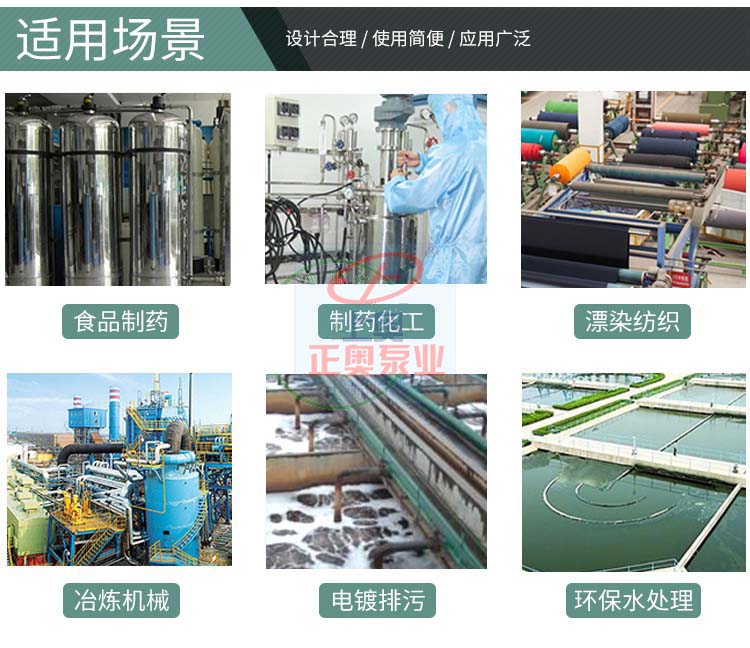 本泵主要用于石化、冶煉、染料、印染、農藥、制藥、稀土、皮革等行業,輸送不含固體顆粒、不易結晶、溫度不高于90℃的各種非氧化性酸(鹽酸、稀硫酸、甲酸、醋酸、丁酸)等腐蝕性介質。