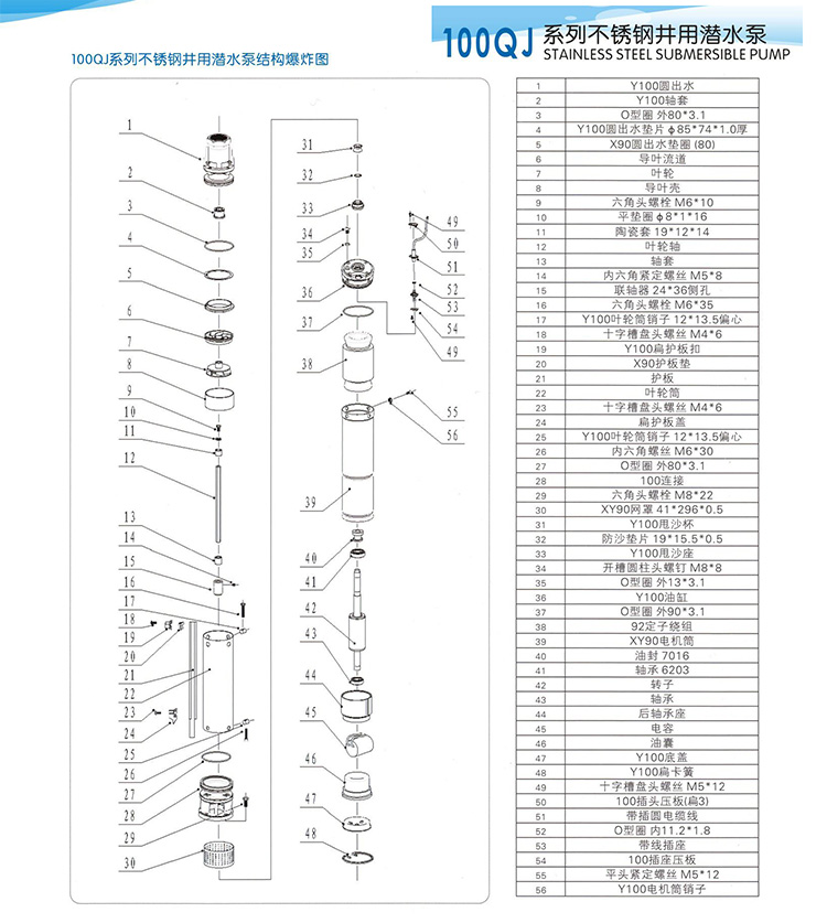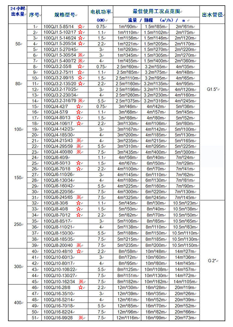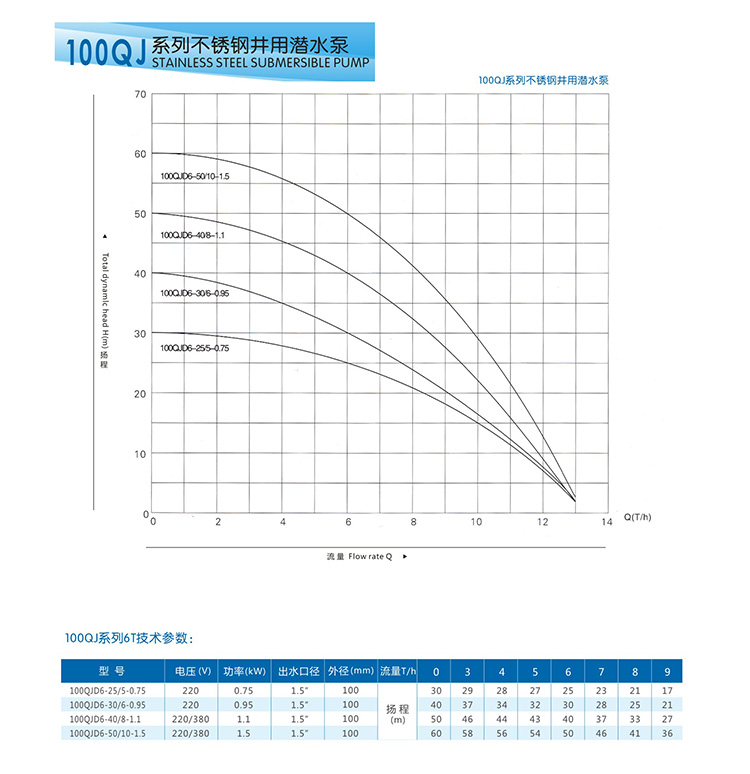 100QJ井用潛水泵產品選型:
