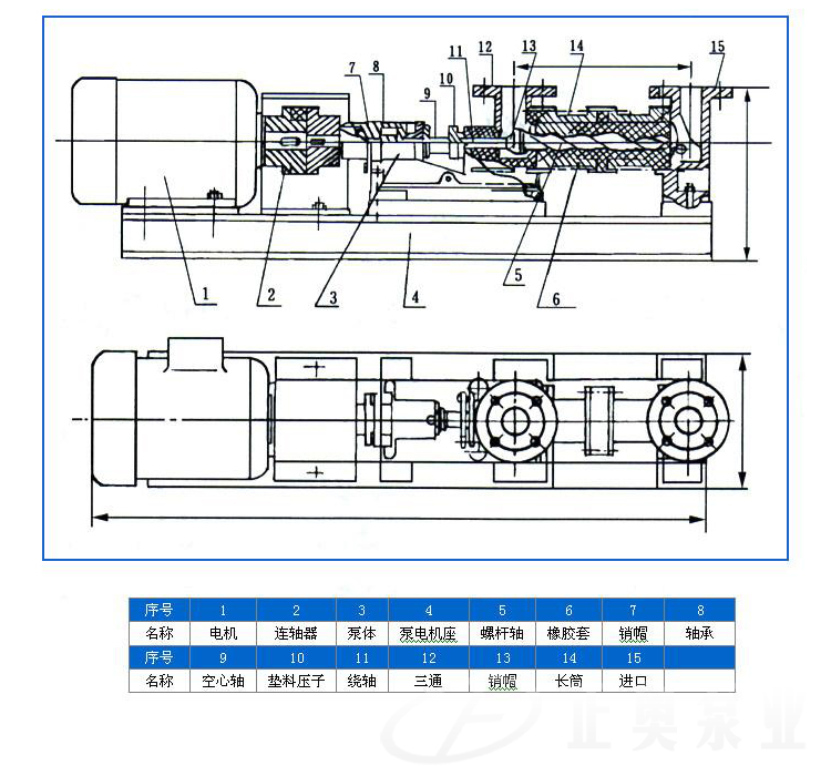I-1BB型:殼體鑄件,傳動件(主軸、螺桿和繞軸)為2Cr13不銹鋼制造,適用于一般中性濃漿液輸送,一般微酸、堿漿液輸送。