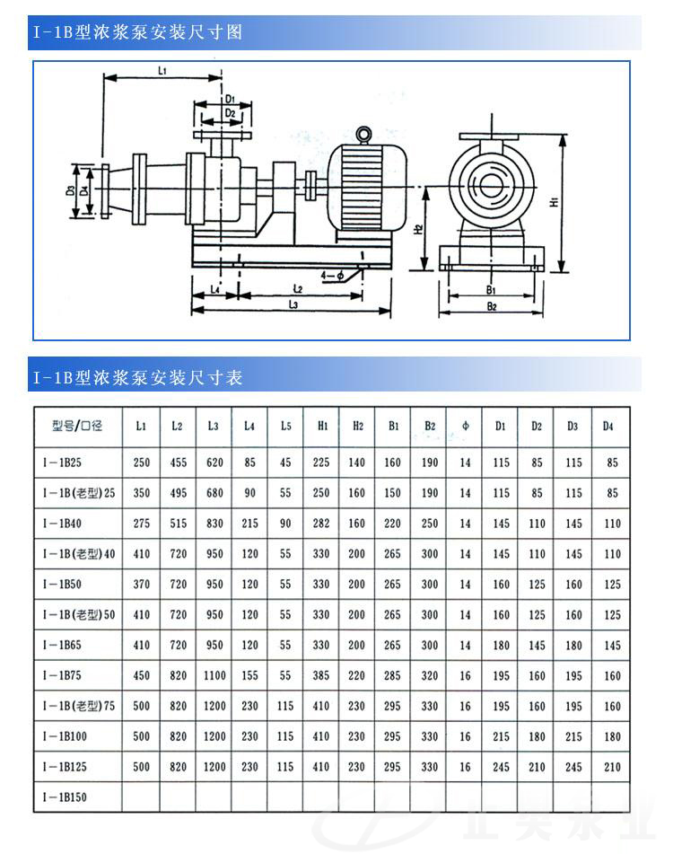 I-1B濃漿泵性能參數表