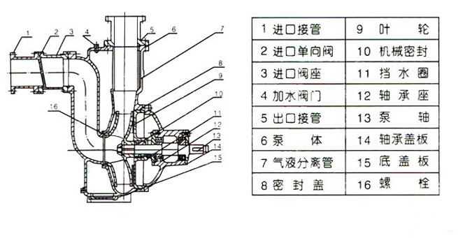 3、自吸性能好:自吸高度比一般自吸泵高1米,且自吸時間更短。