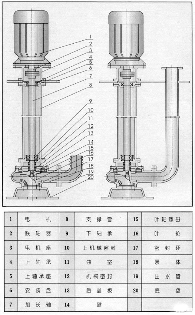 6、泵為立式結構,工作時泵體浸在液體中因而很容易起動,不存在排氣抽空問題,同時具有無泄漏等特點,液下深度可達15米。