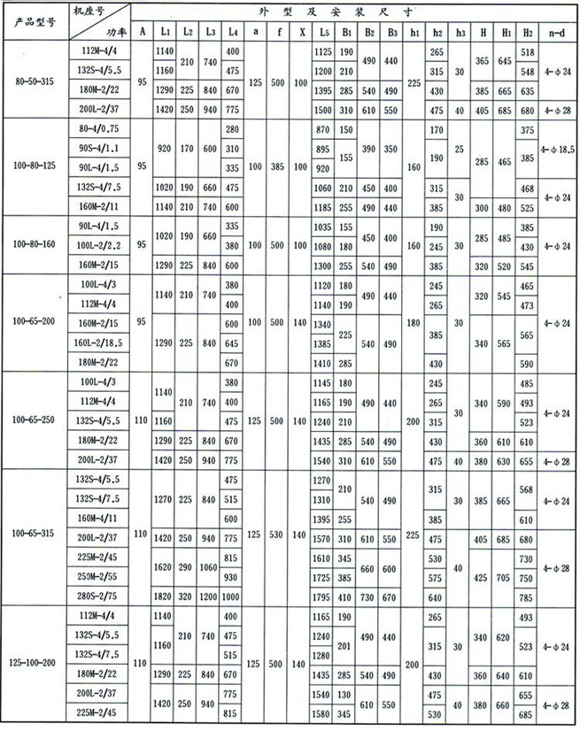 連軸器為三節(jié)可卸連軸器,有的用戶要求直聯(lián)式,可作特殊處理,單獨(dú)設(shè)計(jì)焊接底座。一般情況下安裝尺寸與老型IH相同。