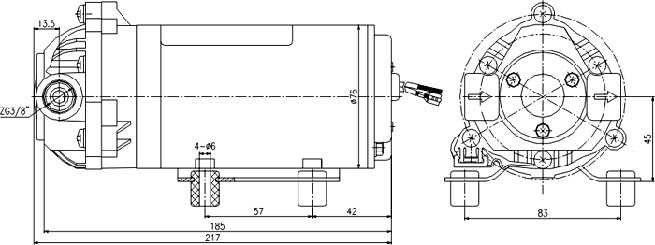 | 型號 | 電壓 (VDC) | 電流 (A) | 流量 GPM/(LPM) | 轉速 (r/min) | 壓力 psi/(MPa) | 吸程 (m) | 調壓開關 (MPa) | 功率 (W) |