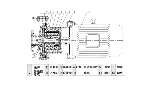 磁力泵以靜密封取代動密封,使泵的過流部件處于完全密封狀態,徹底解決了其它泵的機械密封無法避免的跑,冒,滴之蔽病,磁力泵選用耐腐蝕,鋼玉陶磁,增強聚丙稀作為制造材料,因此它具有良好的抗腐蝕性能,并可以使實輸送介質免受污染。