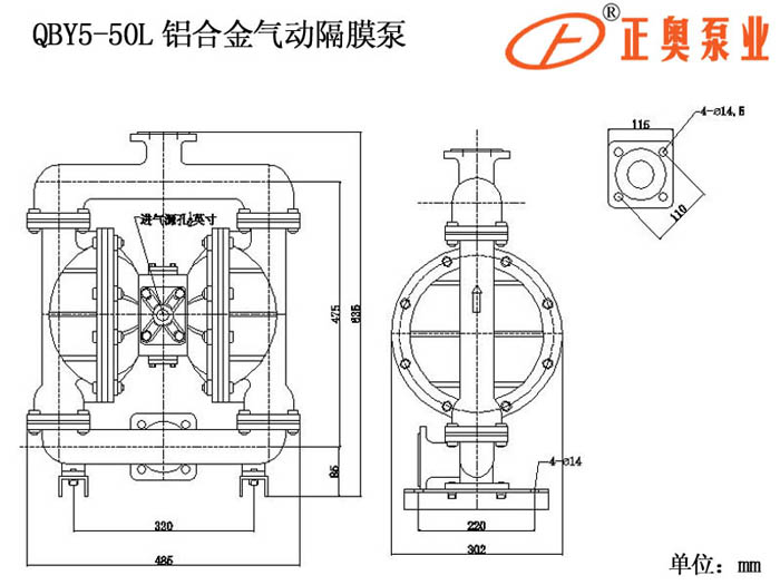 產品名稱:QBY5-50型氣動隔膜泵【全新五代氣動隔膜泵】 如用戶有特殊要求,聯系電話021-66525777,以方便用戶選型,正確使用上海正奧品牌隔膜泵 |