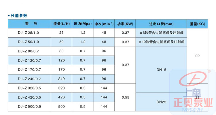 一、DJ-Z型機械驅動隔膜式計量泵技術參數: