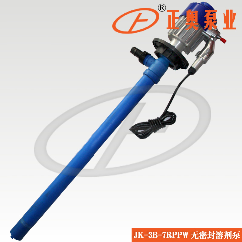 上奧牌JK-3B-7W防型油桶溶劑泵(油桶泵)是正奧泵業公司自主研制而成,各項技術指標均能達到樣機水平,并在樣機基礎上開發了不同使用場合不同抽吸液體的派生產品,該系列泵為輕便型管式軸流泵,具有效率高,使用、維護方便等特點。正奧JK-3B-7W系列不銹鋼電動插桶泵采用無軸封設計,泵管為不銹鋼或工程塑料材質,配用防爆型新型電機,是溶劑類化工液體的理想桶用泵。電動抽液泵概述:JK-3B-7W電動不銹鋼抽液泵(油桶泵、插桶泵)系列泵為輕便型管式軸流泵,具有效率高,使用、維護方便等特點。JK-3B-7W系列電動抽液泵可以直接插入物料桶(最大適用于符合GB/325-1991標準的鋼桶)中抽取桶中液體。可輸送各種油料、帶腐蝕性化學藥水、其他液體。廣泛用于化工、石油化工、精細化工、染料化工、環保、水處理、醫藥、食品等企事業單位部門輸送酸、堿、鹽、油品、飲料等介質及抽吸各種低粘度無顆粒液體。JK-3B-7W系列電動抽液泵同時適用于中小型油田、油庫、煉油廠、加油站、農機站、企事業單位、車隊、車輛船舶等,是輸送溶劑類、汽油、煤油、柴油、輕質燃油的理想工具。工作溫度:-14~100℃。可輸送各種油料、帶腐蝕性化學藥水、其他液體。