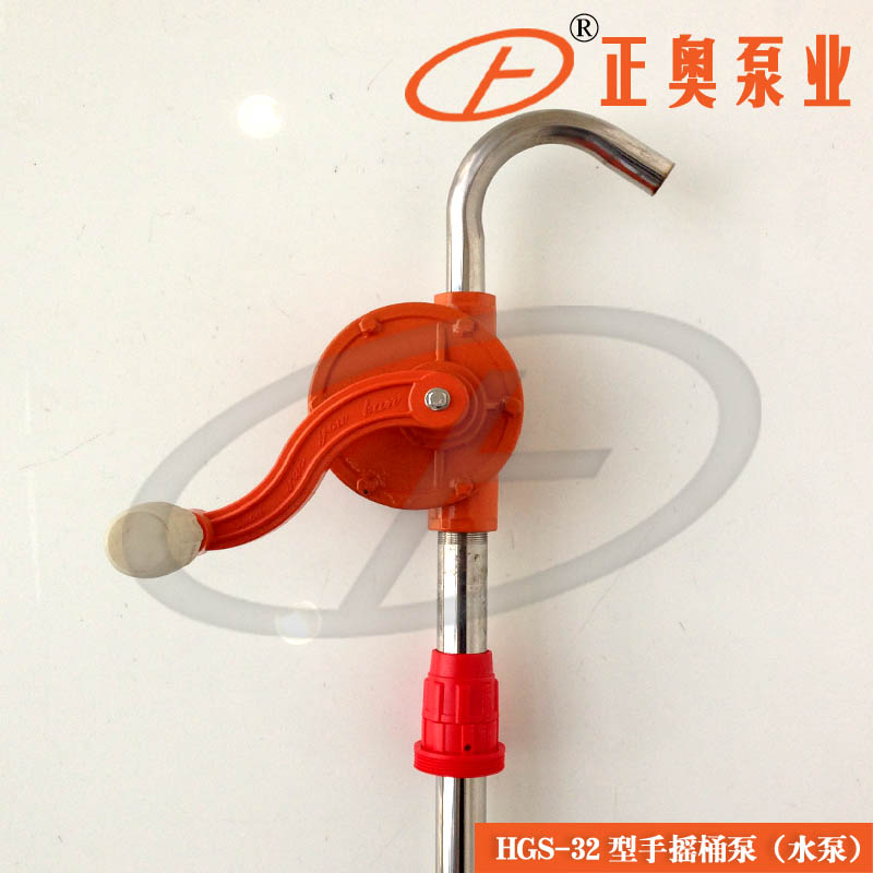 HGS-32型手搖水泵桶泵防爆手搖油桶泵可輸送水、一般酸堿性液體等介質,廣泛用于化工、石油化工、精細化工、染料化工、環保、水處理、醫藥、食品等部門。