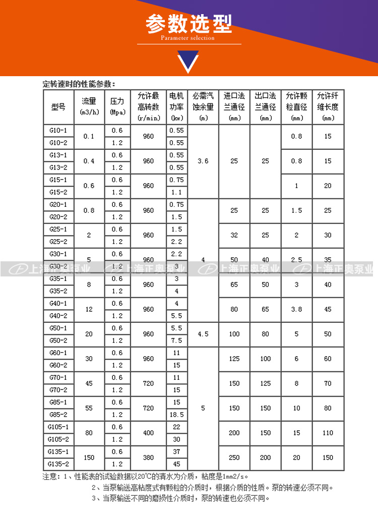 GF型食品衛(wèi)生級(jí)螺桿泵技術(shù)參數(shù)