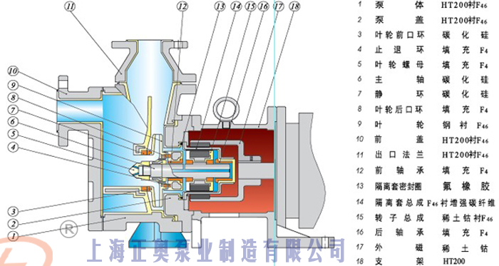 1、自吸磁力泵以靜密封取代動密封,使泵的過流部件處于完全密封狀態,解決了其它泵的機械密封無法避免的跑,冒,滴之蔽病,磁力泵選用耐腐蝕,高強度的增強聚丙稀、四**合金、氮化硅,碳石墨,鋼玉陶磁,作為制造材料,并采用不銹鋼的連接架,為客戶解決了老為環境空氣腐蝕而經常更換聯接架而煩惱。