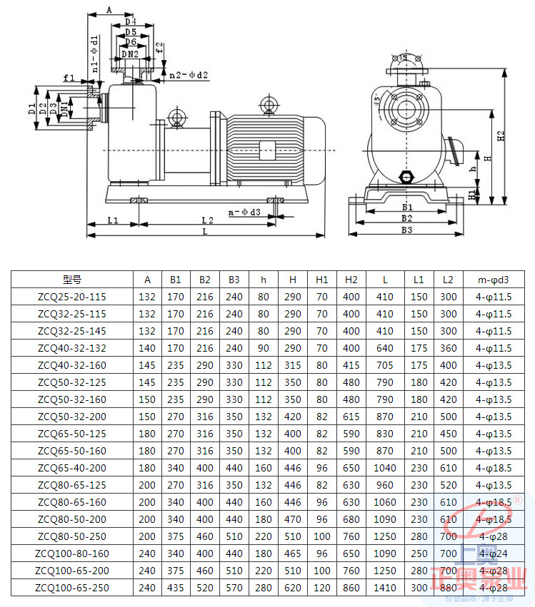 ZCQ型自吸式磁力泵安裝尺寸圖