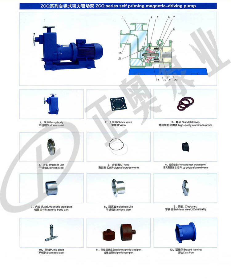 ZCQ型磁力自吸泵結構緊湊,外形美觀,體積小,噪音低,運行可靠,使用維修方便,可廣泛用于石油、化工、制藥、電鍍、印染、食品、科研等單位抽送酸、堿、油類及稀有貴重液體、毒液、揮發性液體,以及循環水設備配套,特別是易漏、易燃、易爆液體的抽送。因此,它是有廣泛的用途,我們真誠地向用戶推薦這種產品。