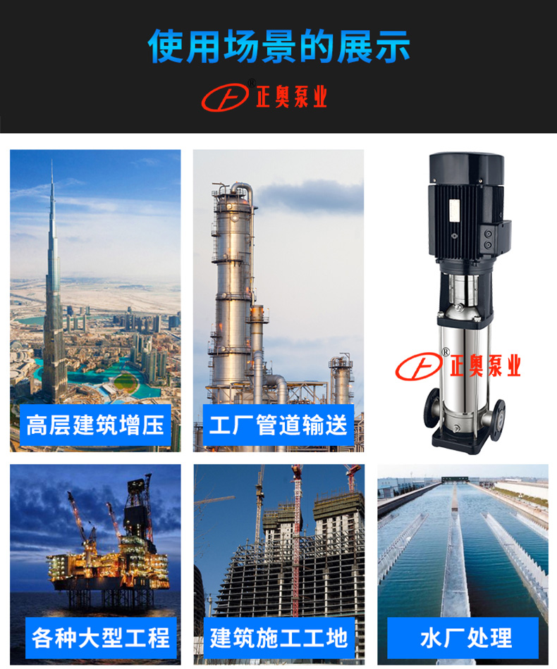 5、輕型不銹鋼立式多級泵的進水口與出水口位于泵座同一水平線上,可直接用于管路當中。