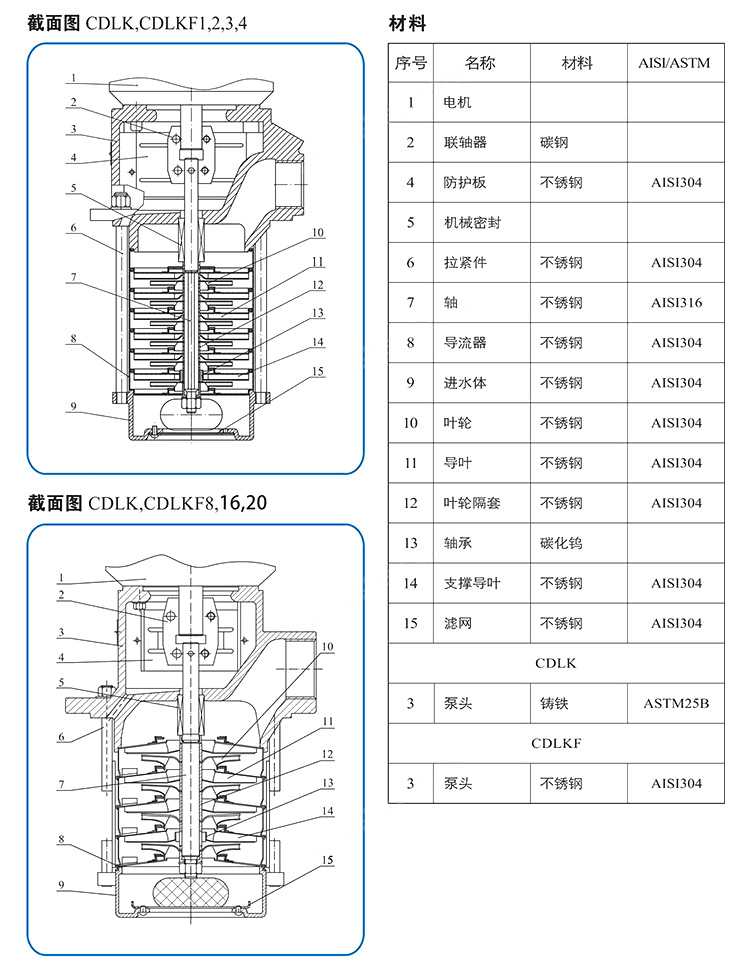 CDLK/CDLKF用于輸送機(jī)床冷卻液、潤滑液、冷凝水輸送、工業(yè)清洗設(shè)備和其它適合浸入式泵使用的場合,適合于不同溫度、流量和壓力范圍,CDLK適用于無腐蝕性液體,CDLKF適于輕度腐蝕性液體。