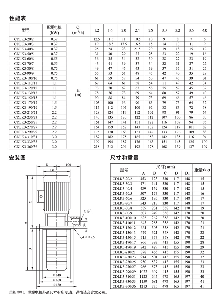 CDLK/CDLKF為安裝標(biāo)準(zhǔn)電機(jī)的自吸立式多級離心液下泵,電機(jī)軸通過泵頭用聯(lián)軸器直接與泵軸聯(lián)接,泵可根據(jù)需要配置智能保護(hù)器,對泵干轉(zhuǎn)、缺相、過載等進(jìn)行有效保護(hù)。為滿足水槽或容器的安裝深度,可安裝空腔體來改變泵本身的長度,不同的級數(shù)長度見尺寸和重量表和可供產(chǎn)品范圍表。