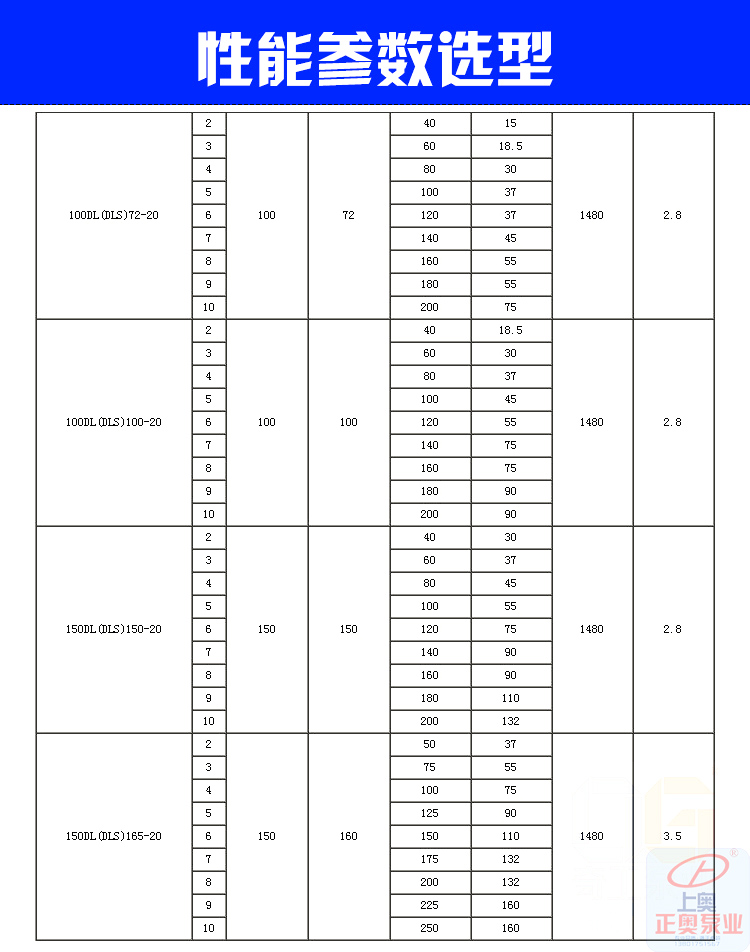 五、DL系列立式多級離心泵選型參數: